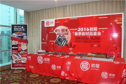 本次活动以“春至鲜来”为主题,在最适合尝鲜的春季与大家约定共同“品鲜”,精心布置的场地也处处体现着能龙与鲜美密不可分的关系。在活动现场专门设置了食材展示区,为客户呈现能龙冻品海鲜食材的最真实而又不失鲜美的状态。同时在会场入口处设置了炸货小吃的展示专区,方便客户随时自取品尝。