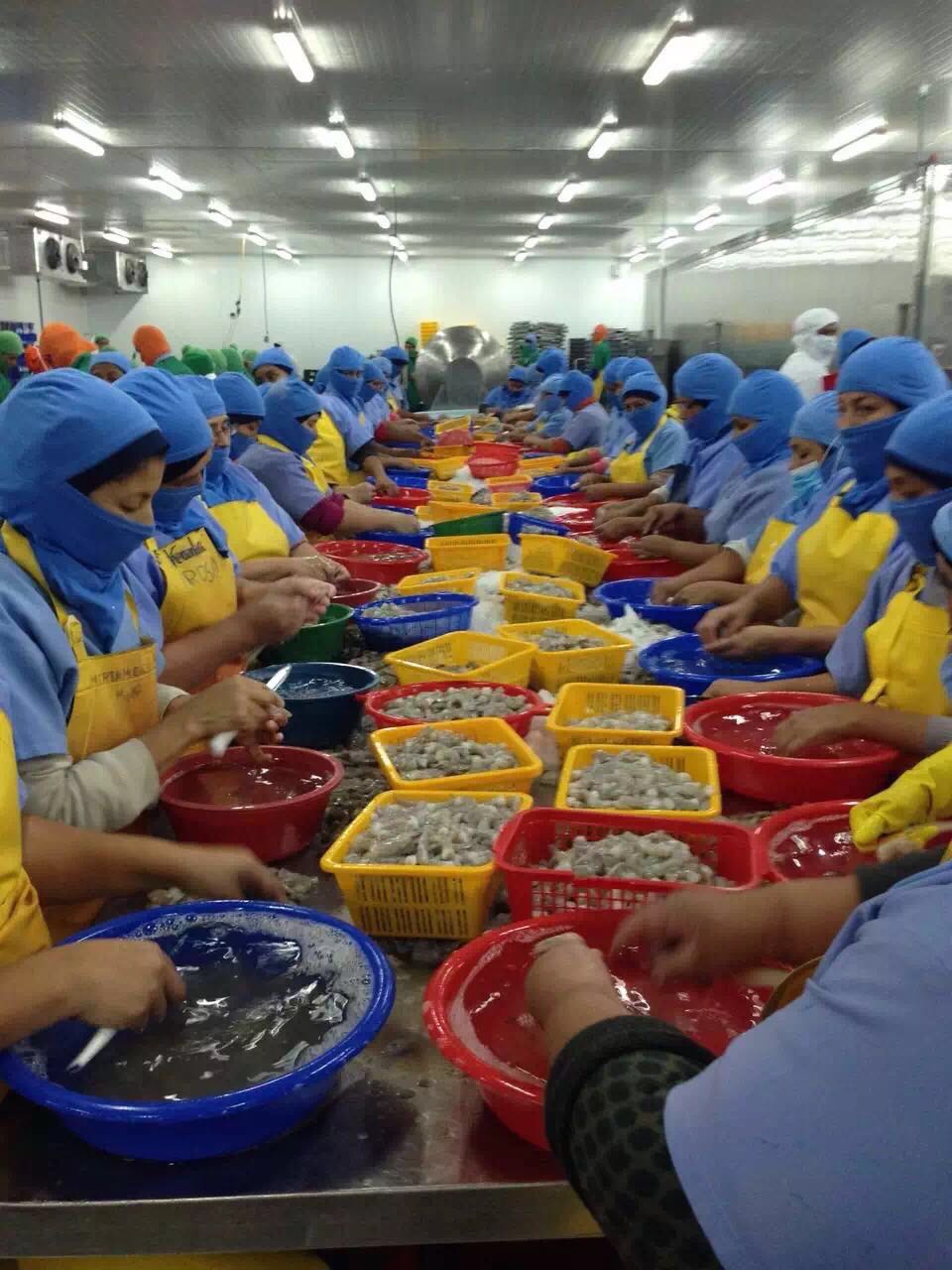 抵达厄瓜多尔后现场,公司人员认真参观了南美白虾的养殖环境,并与当地渔业公司进行养殖、捕捞等多方面的经验交流,详细询问了南美白虾的放苗、换水等各种因素对虾的品质的影响等等。随后到达当地白虾水产加工厂进行了参观,与当地的工人进行了深入的交谈,详细了解了南美白虾的全部加工过程。