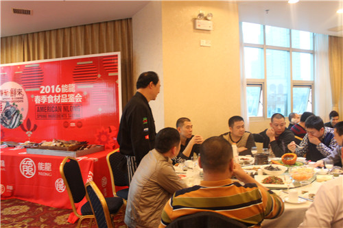 活动以能龙的品牌宣讲正式拉开帷幕。主持人从能龙的品牌发展历程、能龙目前的合作客户及企业定位三方面为客户简要描绘了能龙的企业面貌。紧接着对公司目前主推产品进行介绍,从鱼类、虾类、贝类、参类等多条产品线为客户展示能龙产品,并对当天品鉴的食材进行了重点的介绍。宣讲的最后一节是由湘菜产业促进会秘书长陈敬女士发言。陈秘书长代表湖南餐饮界对能龙表示欢迎与肯定,肯定了能龙全球采购的优势,并表示食材的引进与丰富更有益于湘菜在更大范围内的推广。