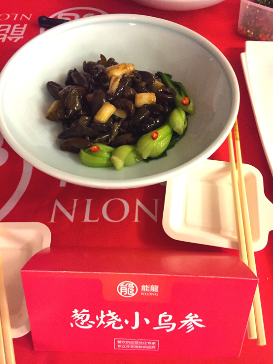针对此次沟通会,能龙也进行了充足的筹备。不仅准备了多款精致菜品参展,对现场展台及周边物料也进行了精心的布置。活动议程中,能龙市场部薛肖肖对公司发展情况、企业定位和能龙产品进行了热情专业的宣讲,获得了阵阵掌声。随后的菜品品鉴环节中,能龙厨务部为本次活动精心烹饪的九道美食,分别是藤椒小鲜鱿、仔姜芽爆炒小鲜鱿、酸汤龙利鱼、生灼龙利鱼片、葱烧小乌参、麻辣来凤鱼、香煎带皮龙利鱼块、雪菜笋丝美人鲽、香煎秋刀鱼。这九道美食不仅造型精致可人,味道更是让不少参观者赞不绝口。