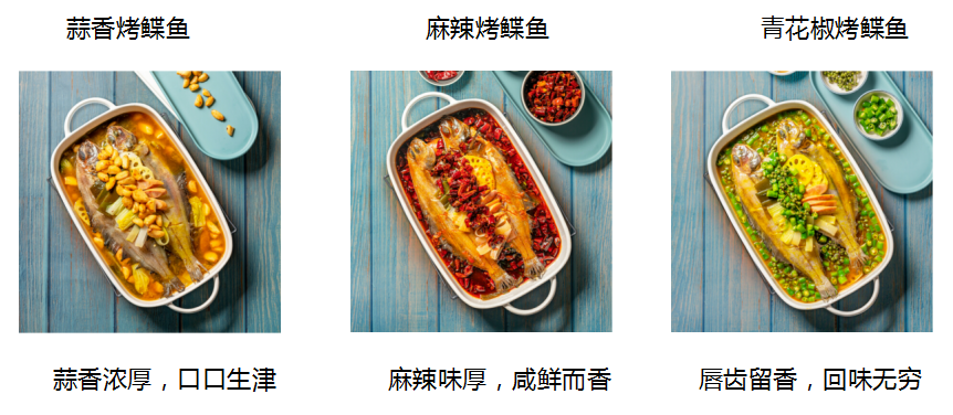 产品主材使用了阿拉斯加美人鲽,体型肥硕,肉质紧实,并进行了预先处理、调味、等工序,省去繁复加工。专业的川菜大师使用十余种香料调和出蒜香、麻辣、青花椒三种口味,选择丰富、味道稳定,无需精湛厨艺,也能做出大厨的味道。同时产品中搭配了数种优质食材,让口感更佳丰富。