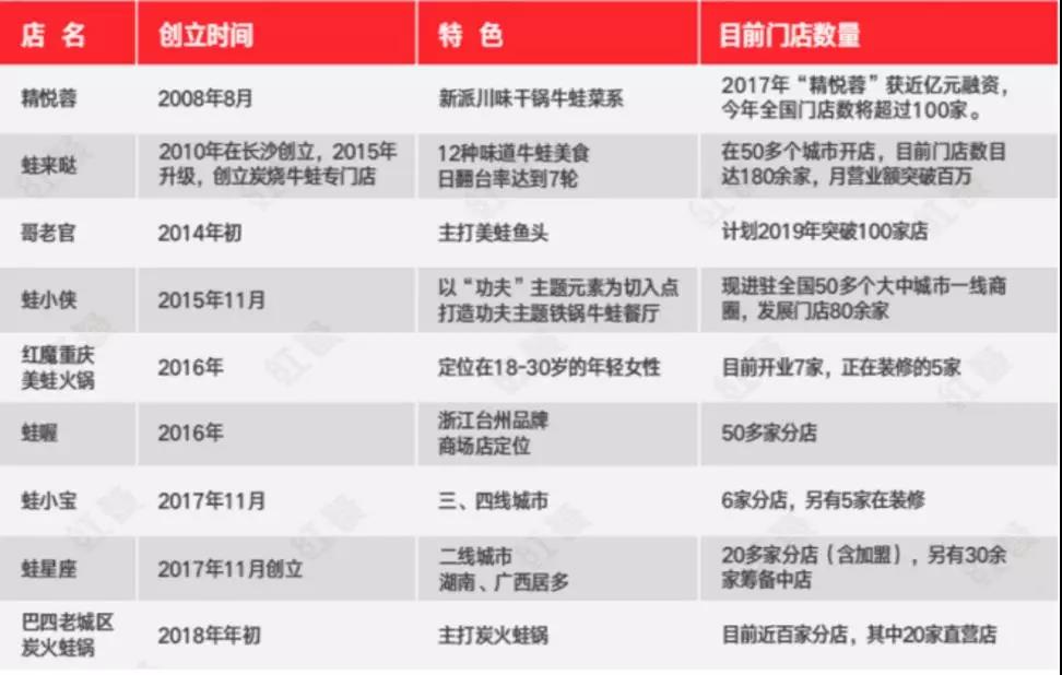 据红餐统计,仅北上广深4大一线城市的牛蛙主题餐厅数量就接近1.5万家。全国各类牛蛙主题餐厅,像精悦蓉、蛙来哒、哥老官、蛙小侠、咏哇田鸡等,深受消费者喜爱,连锁店数量快速扩张。