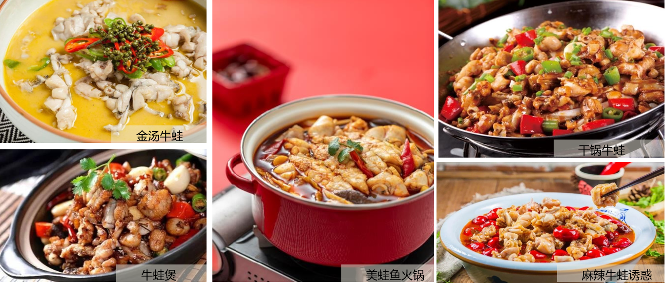近几年牛蛙餐饮消费火爆,以牛蛙为主题的餐饮形成了一股风潮。牛蛙肉是一种高蛋白、低脂肪、低胆固醇的健康食品,营养丰富,味道鲜美。在全国很多商场都能见到牛蛙主题餐厅,并且很多热门主题餐厅经常需要排长队等候才能享用到美味的蛙肉。