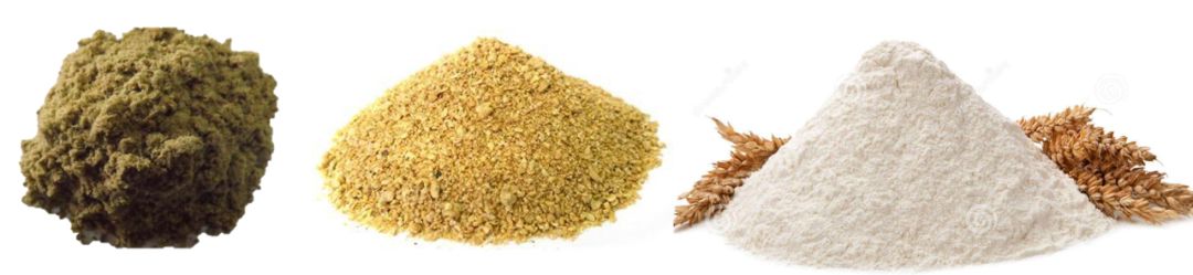 牛蛙饲料中选用的蒸汽鱼粉、豆粕、面粉等安全营养的原料