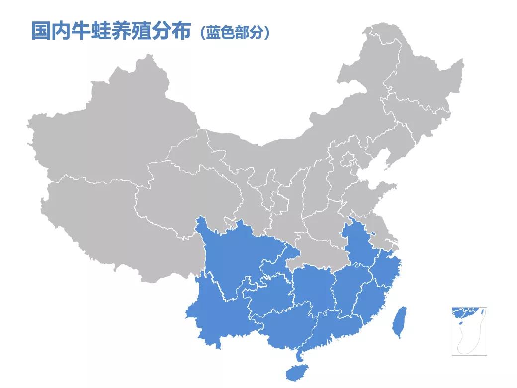 从牛蛙引入国内开始,水产科技工作者就开始了牛蛙人工繁育的探索。1982年,湖南师范大学联合汉寿县特种水产研究所,共同努力成功突破了牛蛙的人工繁育。1984年,中国台湾的牛蛙饲料正式面世。通过对牛蛙的摄食驯化、营养需求和配合饲料进行系统攻关研究,解决了牛蛙摄食驯化的技术难关,牛蛙养殖开始驶入快车道。经过60多年的发展,牛蛙养殖已经遍布国内13个省市、自治区,2019年养殖产量已达40万吨左右,并且已经形成了完整的产业链。